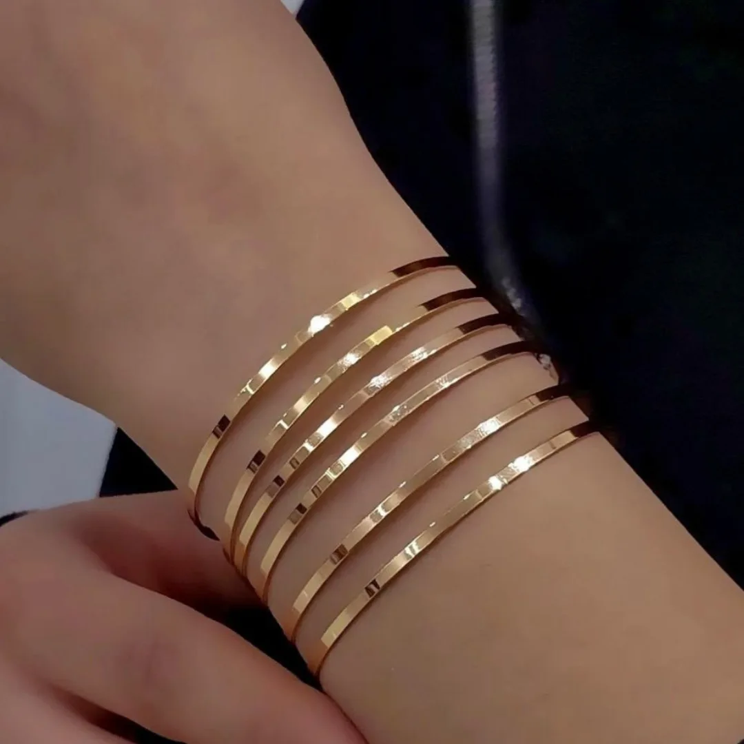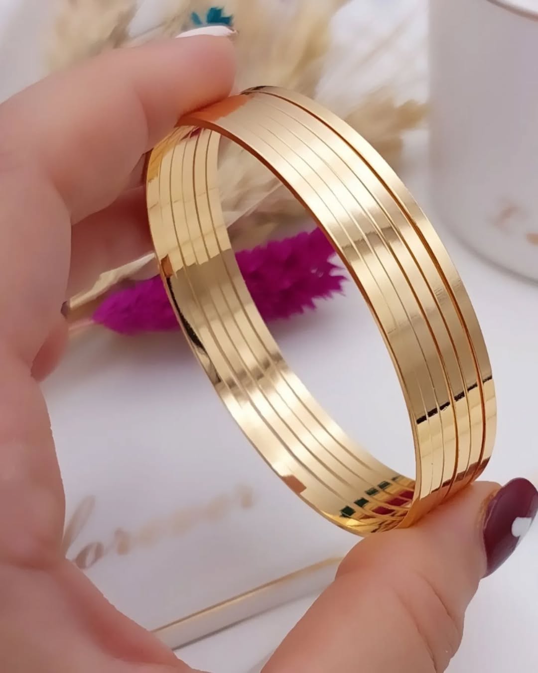 النگو آینهای، درخشان مثل آفتاب روی دستانت!سطح صیقلی و برق خاصش، نگاهها رو خیره میکنه.سادگی و شیکی رو باهم داره، مناسب استایلهای مجلسی و روزمره.با هر حرکت، مثل آینه بدرخش و خودتو تکرار نشدنی کن. ✨