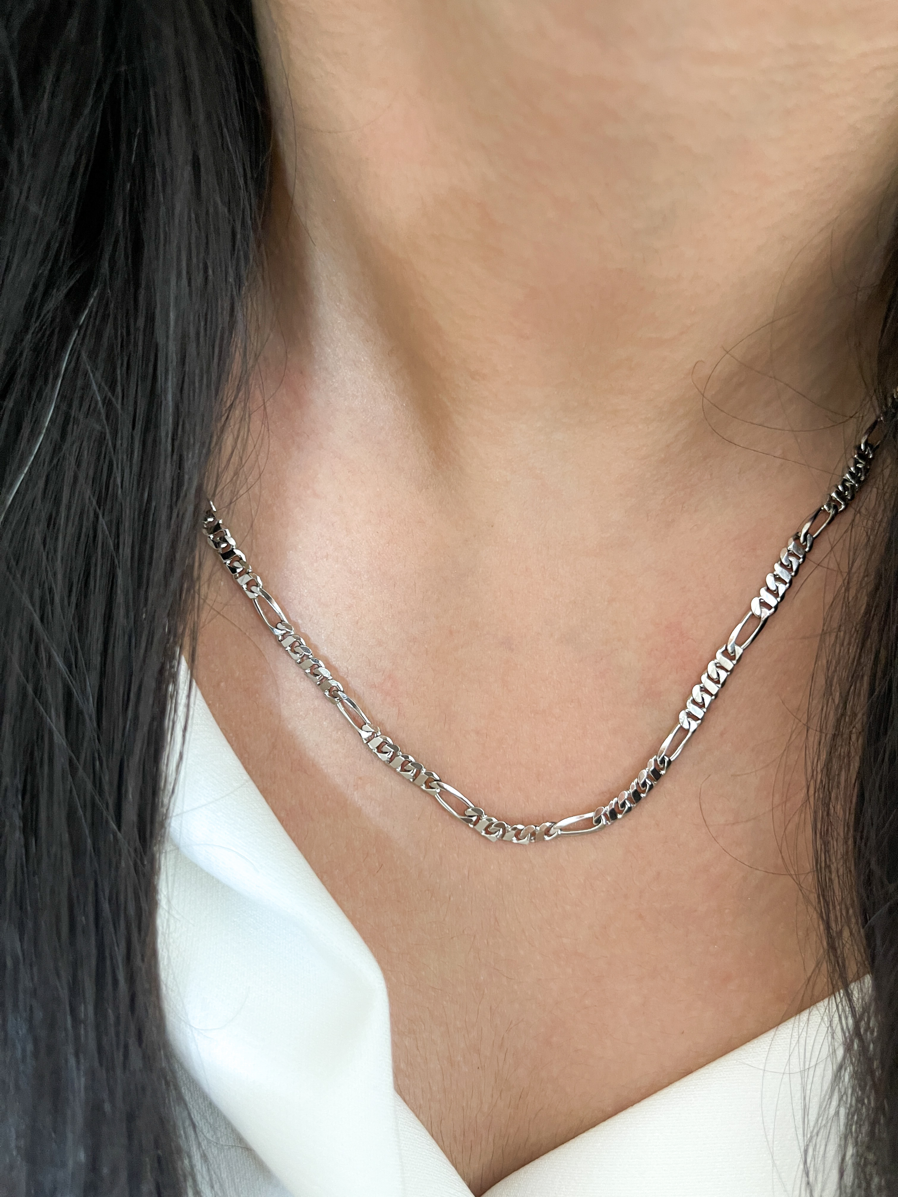 گردنبند فیگارو سیلور ژوپینگ – Xuping Figaro Silver Necklaceگردنبند فیگارو سیلور ژوپینگ با طراحی کلاسیک و زنجیری فیگارو، جلوهای شیک و مدرن به استایل شما میده ✨این مدل از جنس استیل با آبکاری سیلور ژوپینگ ساخته شده و رنگ ثابتش باعث میشه سالها بدرخشه. طراحی زنجیری فیگارو باعث میشه گردنبند هم برای استفاده روزمره و هم مهمانی مناسب باشه و به راحتی با دیگر اکسسوریها ست بشه.ویژگیهای محصول:جنس: استیل با آبکاری سیلور ژوپینگ ✨طراحی زنجیری فیگارو کلاسیک و شیک رنگ ثابت و مقاوم در برابر تغییر رنگ سبک و راحت روی گردن مناسب استایل روزمره و مجلسی جلوه لوکس و خاص قابل ست شدن با دستبند، انگشتر و دیگر اکسسوریهای ژوپینگ