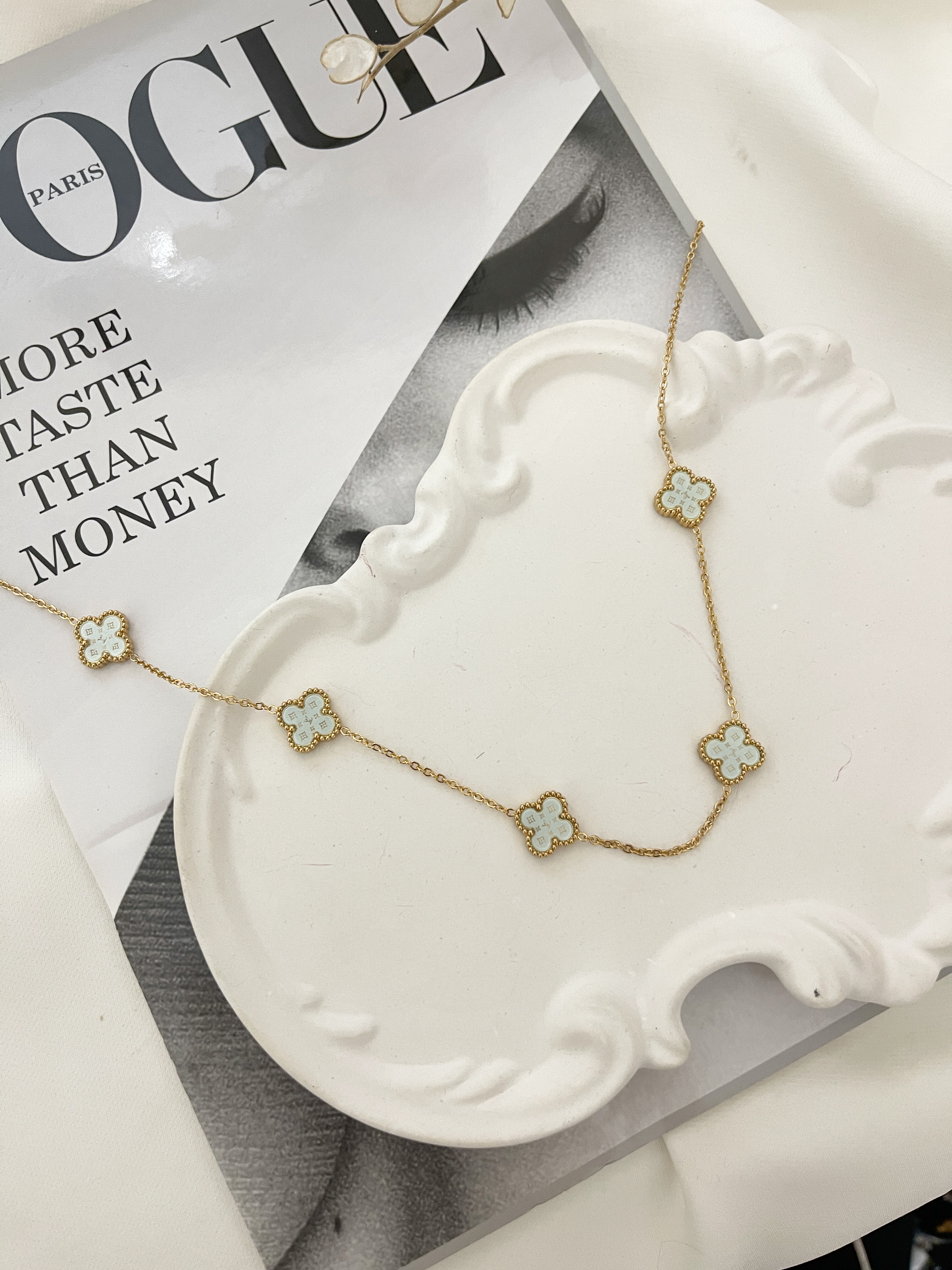 گردنبند ونکلیف استیل – Van Cleef Steel Necklaceگردنبند ونکلیف استیل با طراحی الهامگرفته از مدلهای معروف Van Cleef، جلوهای شیک و زنانه به استایل شما میده ✨این مدل از استیل با کیفیت و رنگ ثابت ساخته شده و طراحی گل چهارپر معروفش، نماد خوششانسی و زیباییه. مناسب استفاده روزمره و مهمانی، و قابل ست شدن با گوشواره و دستبند ونکلیف هست.ویژگیهای محصول:جنس: استیل با کیفیت و ضد حساسیت طراحی گل چهارپر، نماد خوششانسی 🌸رنگ ثابت و مقاوم در برابر تغییر رنگ سبک و راحت روی گردن مناسب استایل روزمره و مجلسی جلوه لوکس و خاصقابل ست شدن با دیگر اکسسوریهای ونکلیف