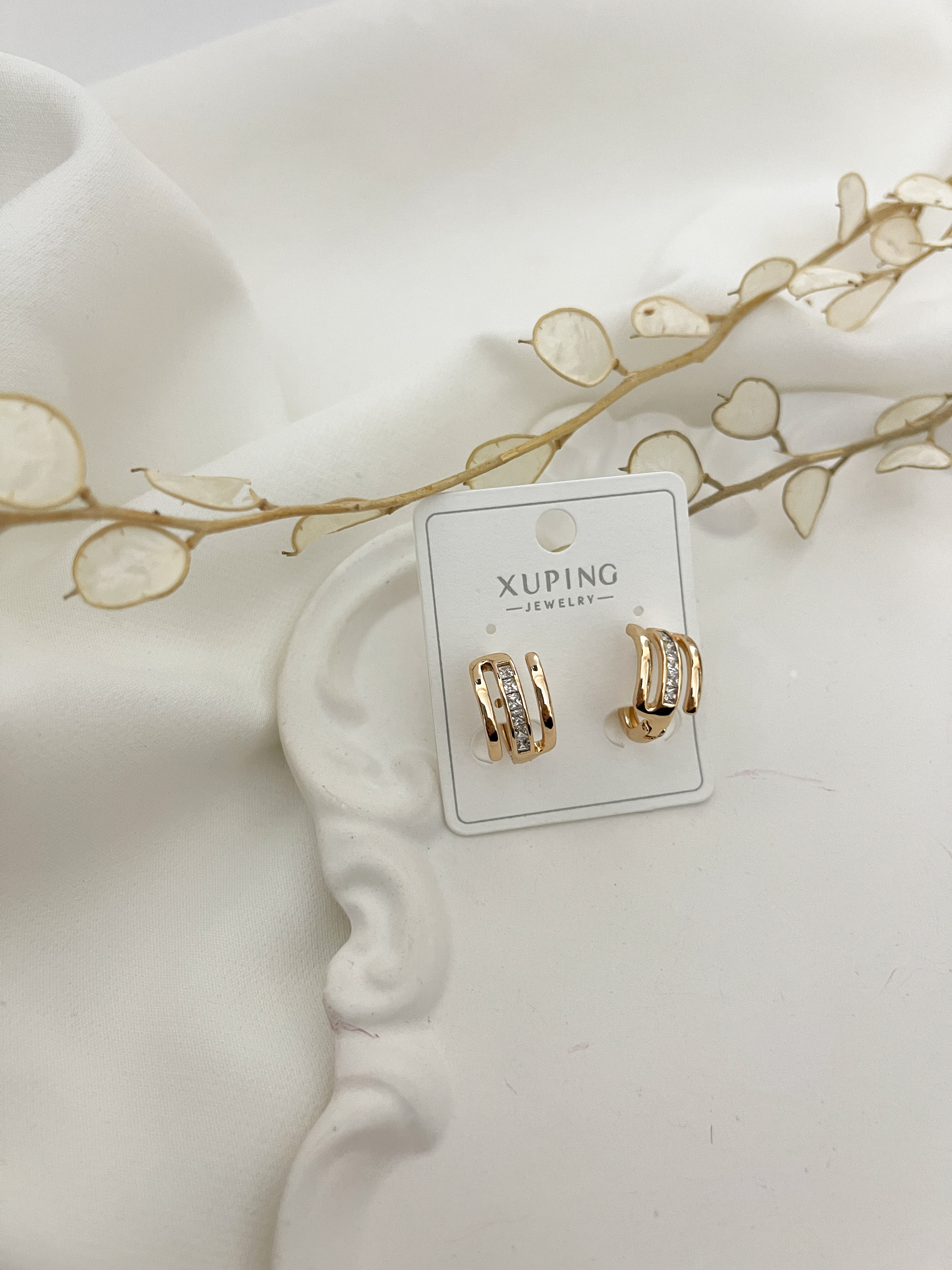 گوشواره سه خط نگیندار ژوپینگ – Xuping Triple Line Earringsگوشواره سه خط نگیندار ژوپینگ با طراحی مدرن و شیک، جلوهای جذاب و درخشان روی گوش ایجاد میکنه 💎سه خط موازی با نگینهای براق، حس لوکس و خاص بودن رو منتقل میکنه و مناسب استفاده روزمره، مهمانی و استایلهای رسمی هست.ویژگیهای محصول:برند: ژوپینگ (Xuping)جنس: آبکاری طلای باکیفیت و ضد حساسیتطراحی سه خط موازی با نگینهای درخشان ✨رنگ ثابت و مقاوم در برابر تغییر رنگسبک و راحت روی گوش مناسب استایل روزمره و مجلسی قابل ست شدن با گردنبند و دستبند ژوپینگ